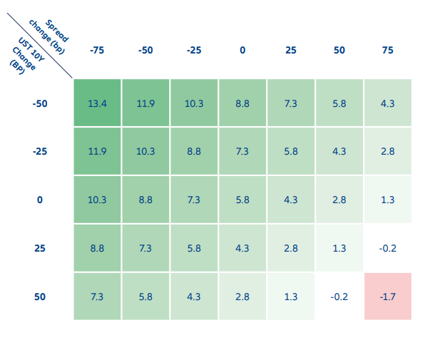 Exhibit 4: Analysis of JP Morgan EMBI GD index based on changes in spread and Treasury yield