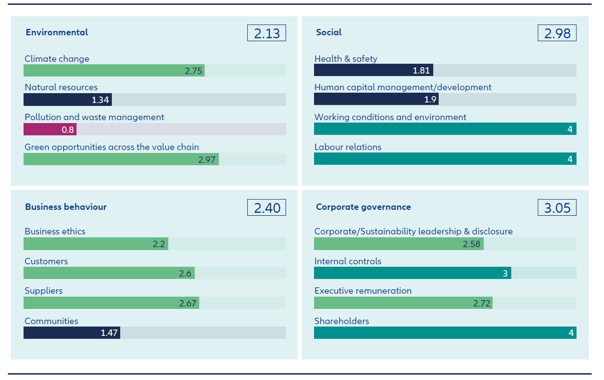 • Simplicity – consolidating multiple ESG key performance indicators (KPIs)/data points into one single, actionable score or rating maximises their usefulness.