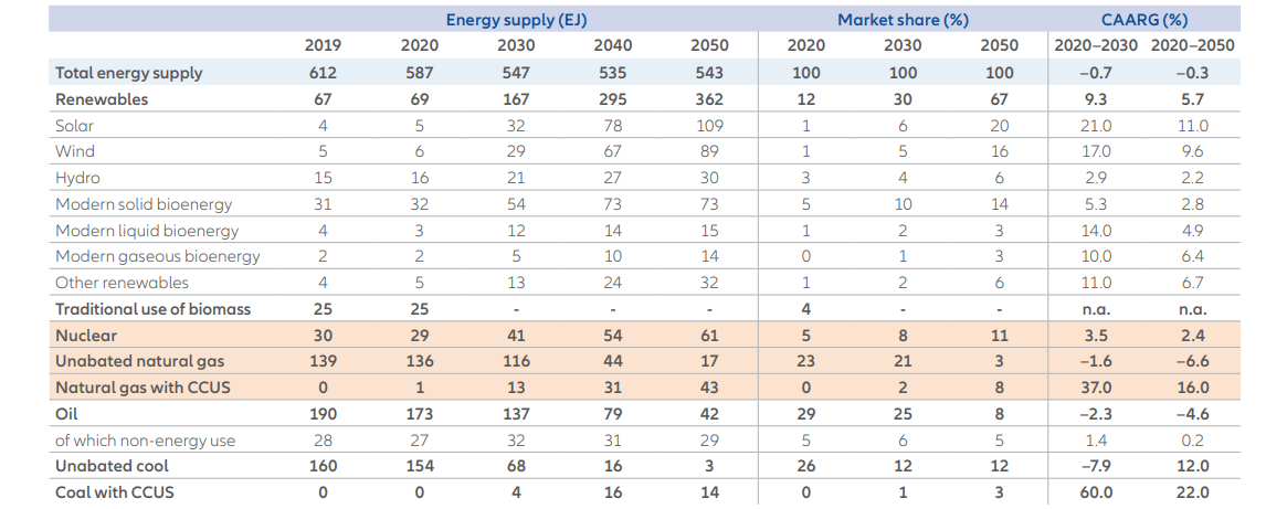 - In the absence of economic carbon capture solutions – which are crucial to its green credentials – gas is expected to be virtually phased out by 2050