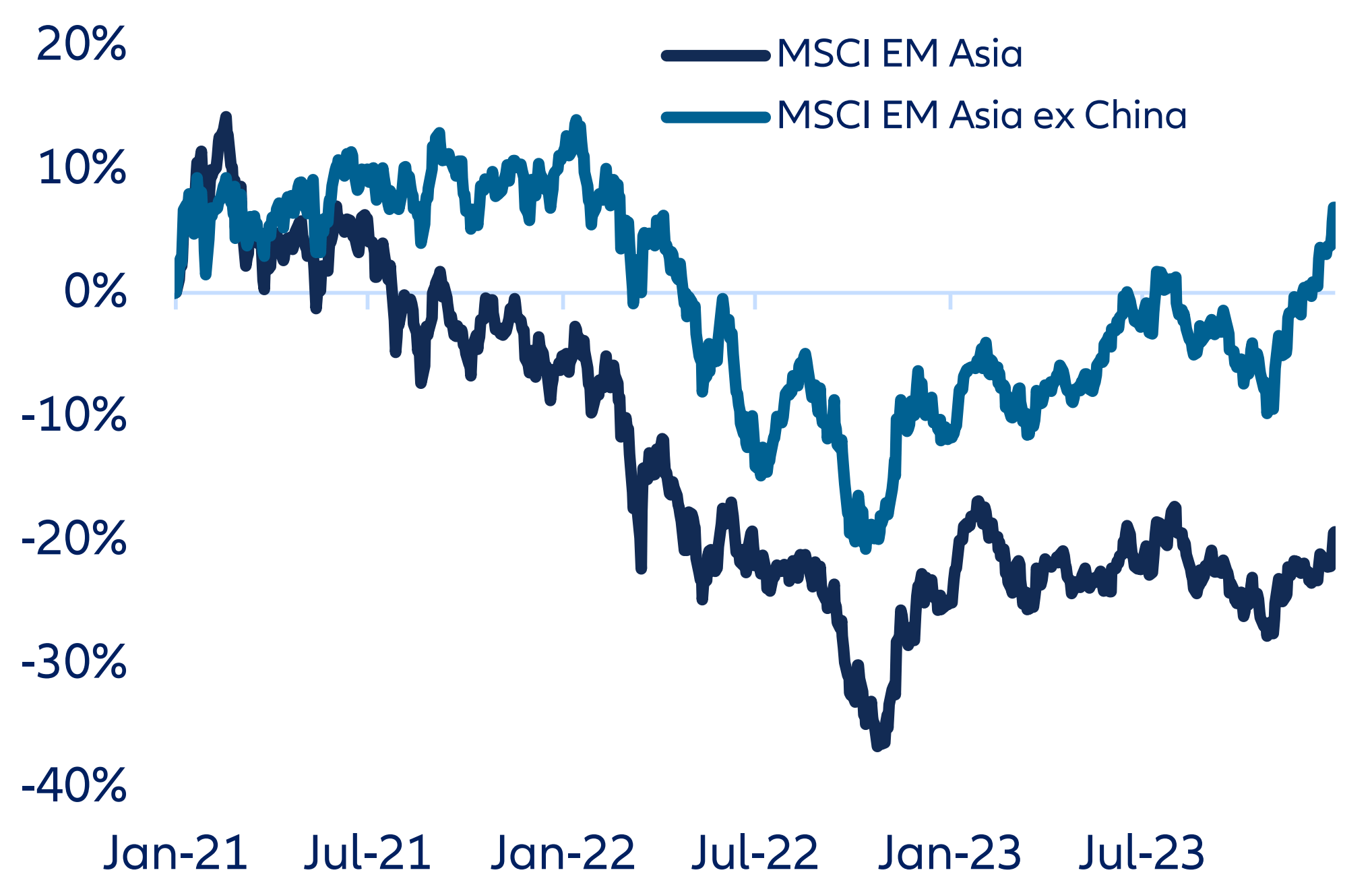 MSCI Emerging Asia compared to MSCI Emerging Asia ex China – since end of 2020 (USD)